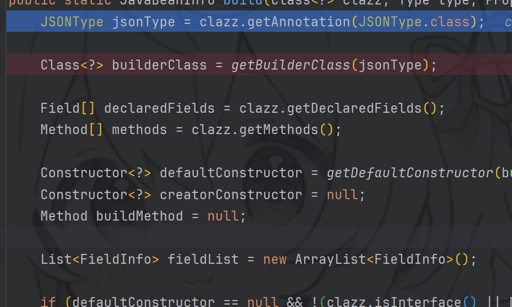 跟进build方法,首先可以看到使用反射获取我们给的类的方法属性和方法