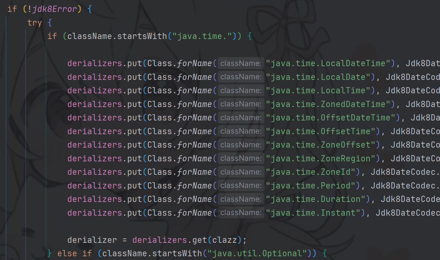 这里开始会进行初始化操作,对象类名设置为fastjson自定义的类名