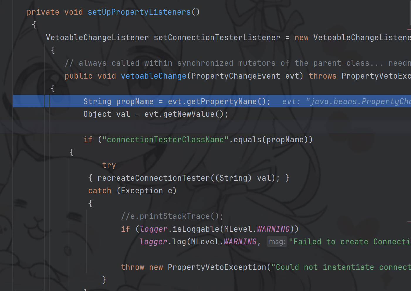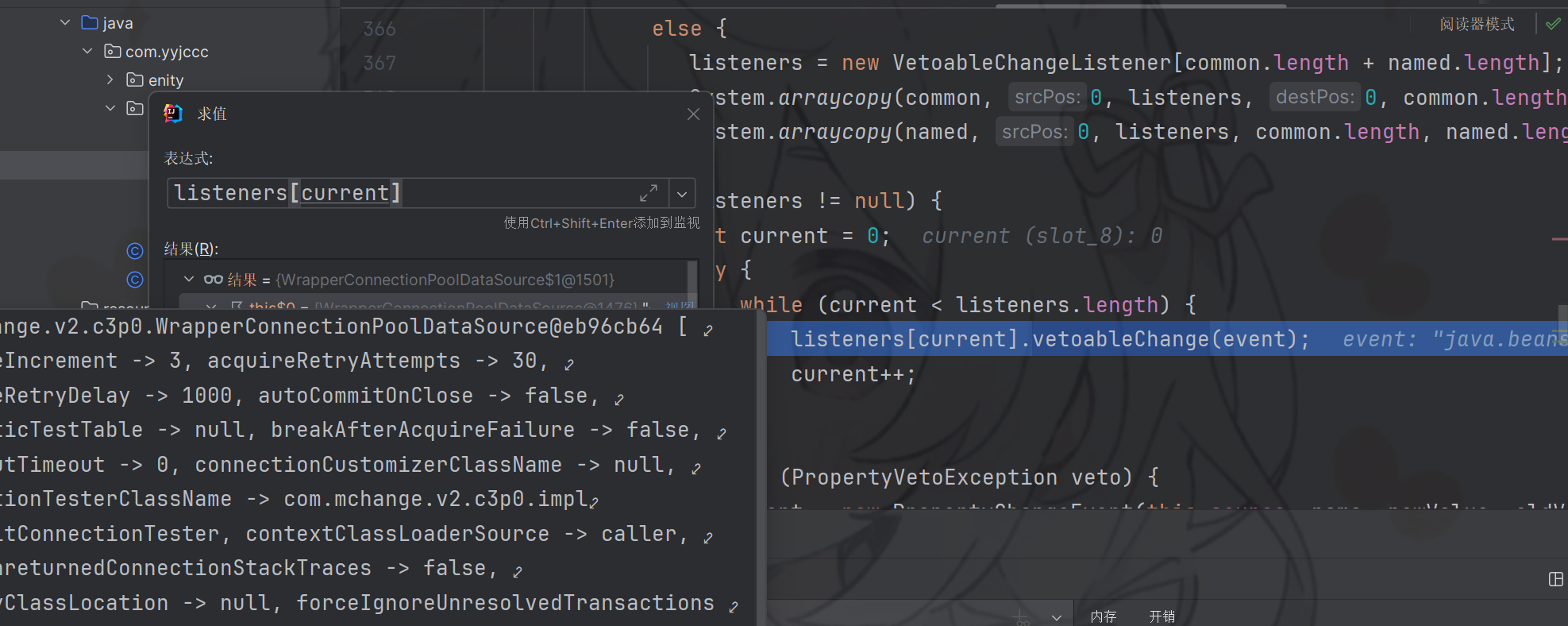 进入WrapperConnectionPoolDataSource#vetoableChange