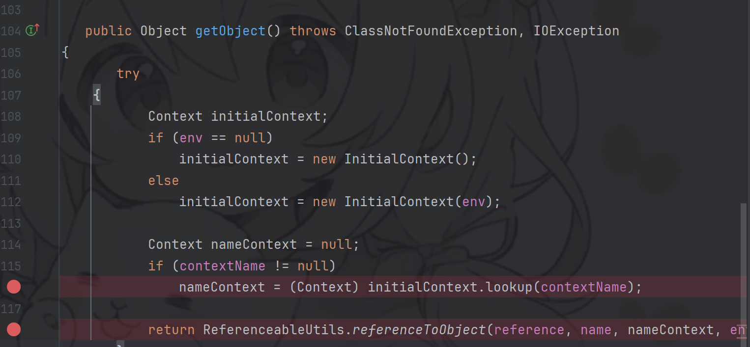 在这里发现存在lookup方法,那么肯能这点就存在jndi注入,好吧但实际上在反序列化时我们是无法调用到该方法的,因为属性contextName为默认null且不可控