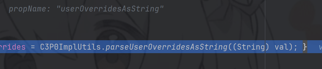 进入C3P0ImplUtils#parseUserOverridesAsString