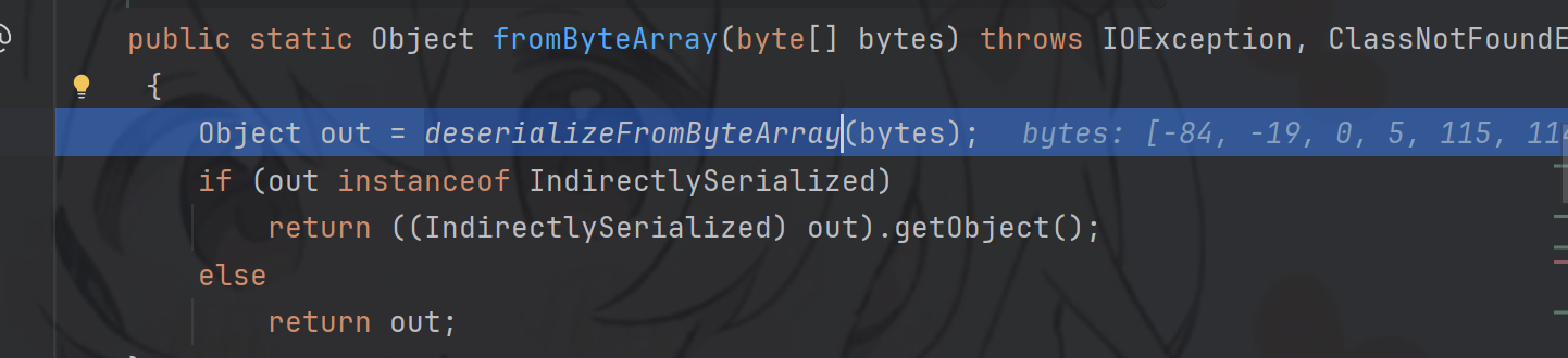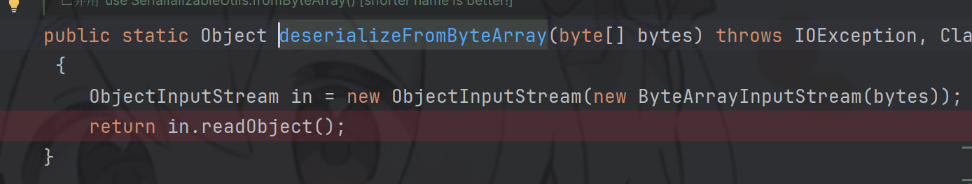 这里就是一个链子结尾,触发了原生的反序列化,readObject,也算是反序列链子的一个入口点,因此可以用这个来进行二次反序列化
