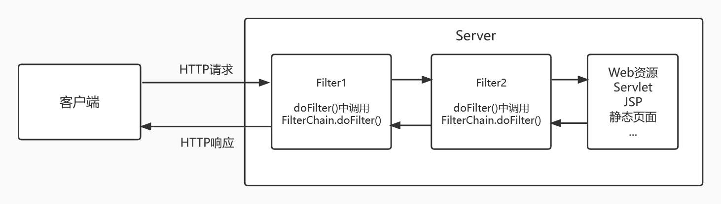 @Override public void doFilter(ServletRequest request, ServletResponse response, FilterChain chain) throws IOException, ServletException { System.out.println("执行了操作"); chain.doFilter(request,response); }