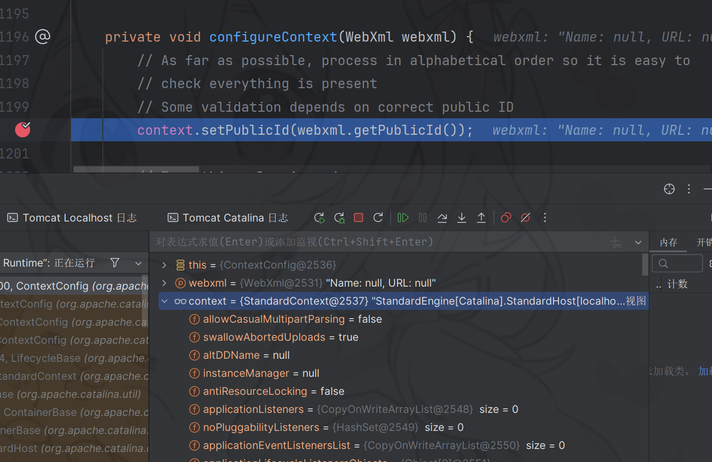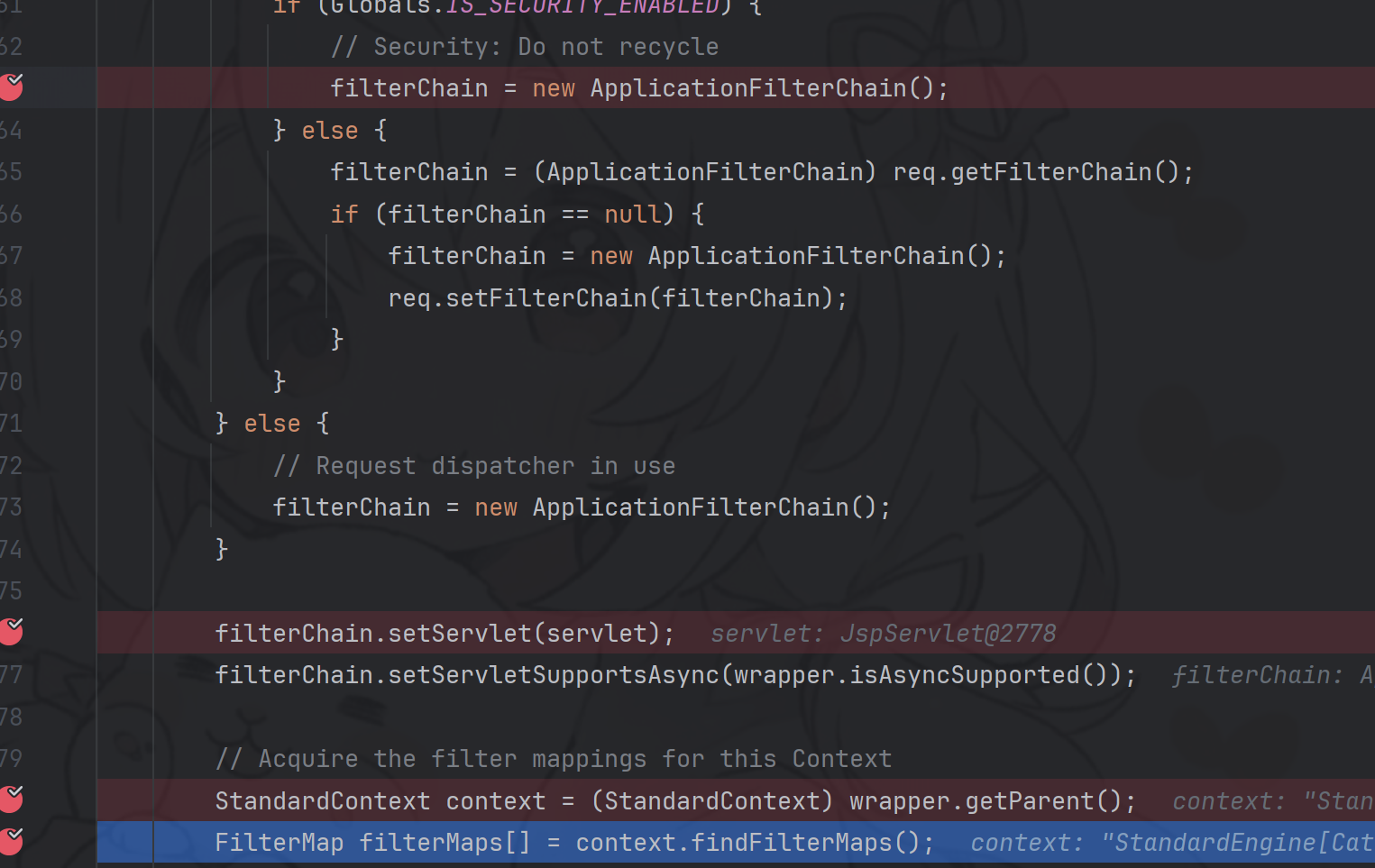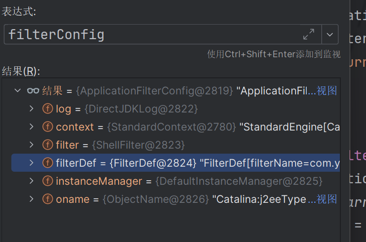 其中filterConfigs包含了当前的上下文信息StandardContext、以及filterDef等信息