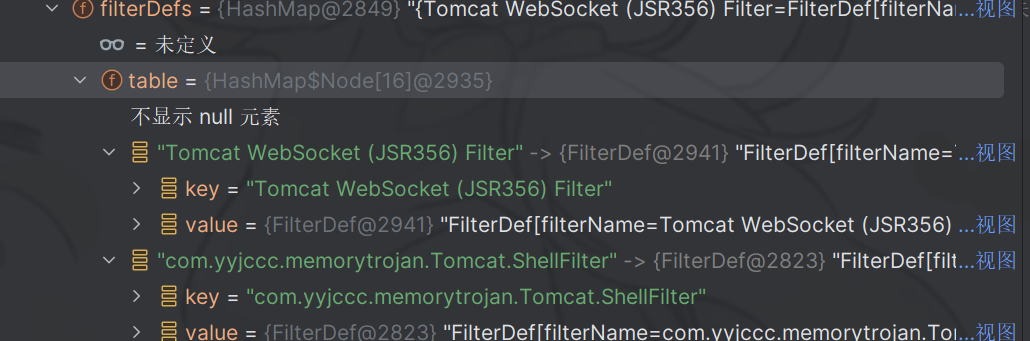 filterDefs是一个HashMap,以键值对的形式存储filterDef