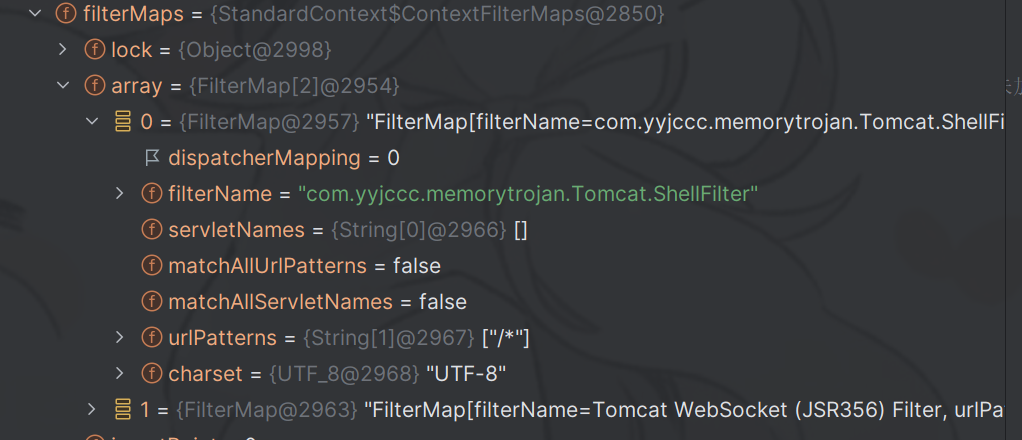 于是下面的工作就是构造含有恶意filter的FilterMaps和FilterConfig对象,并将FilterConfig添加到filter链中了。