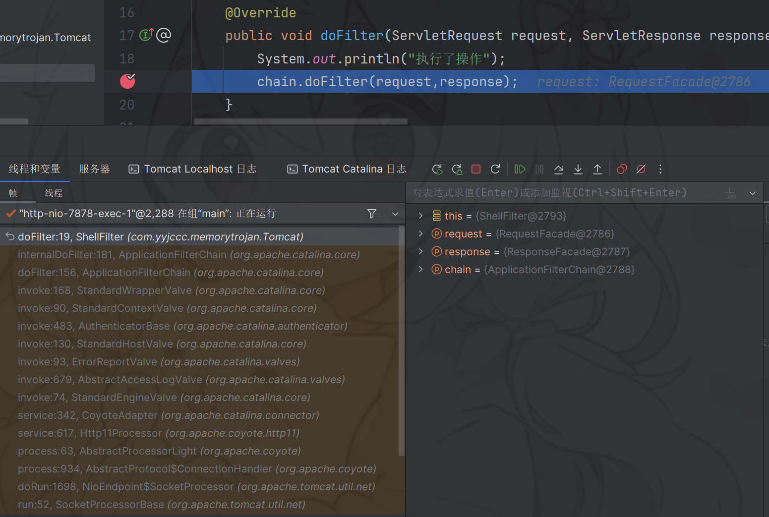 总之,注入内存马是在上游的操作,而上面分析的流程在下游部分
