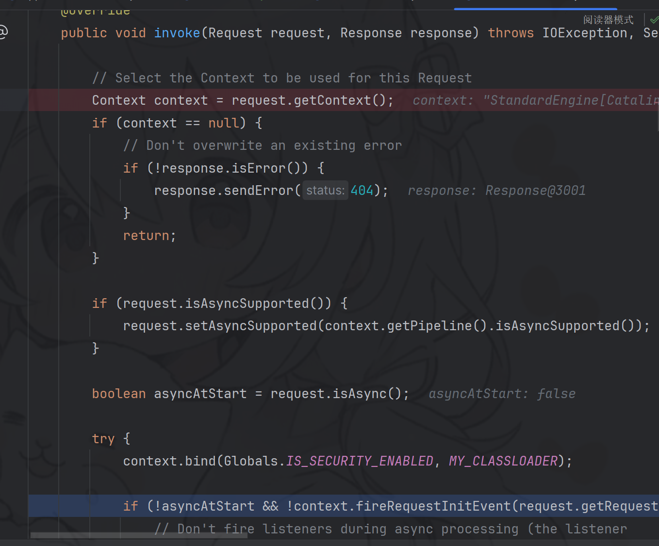 host.getPipeline().getFirst().invoke(request, response)实现调用后续的Valve。