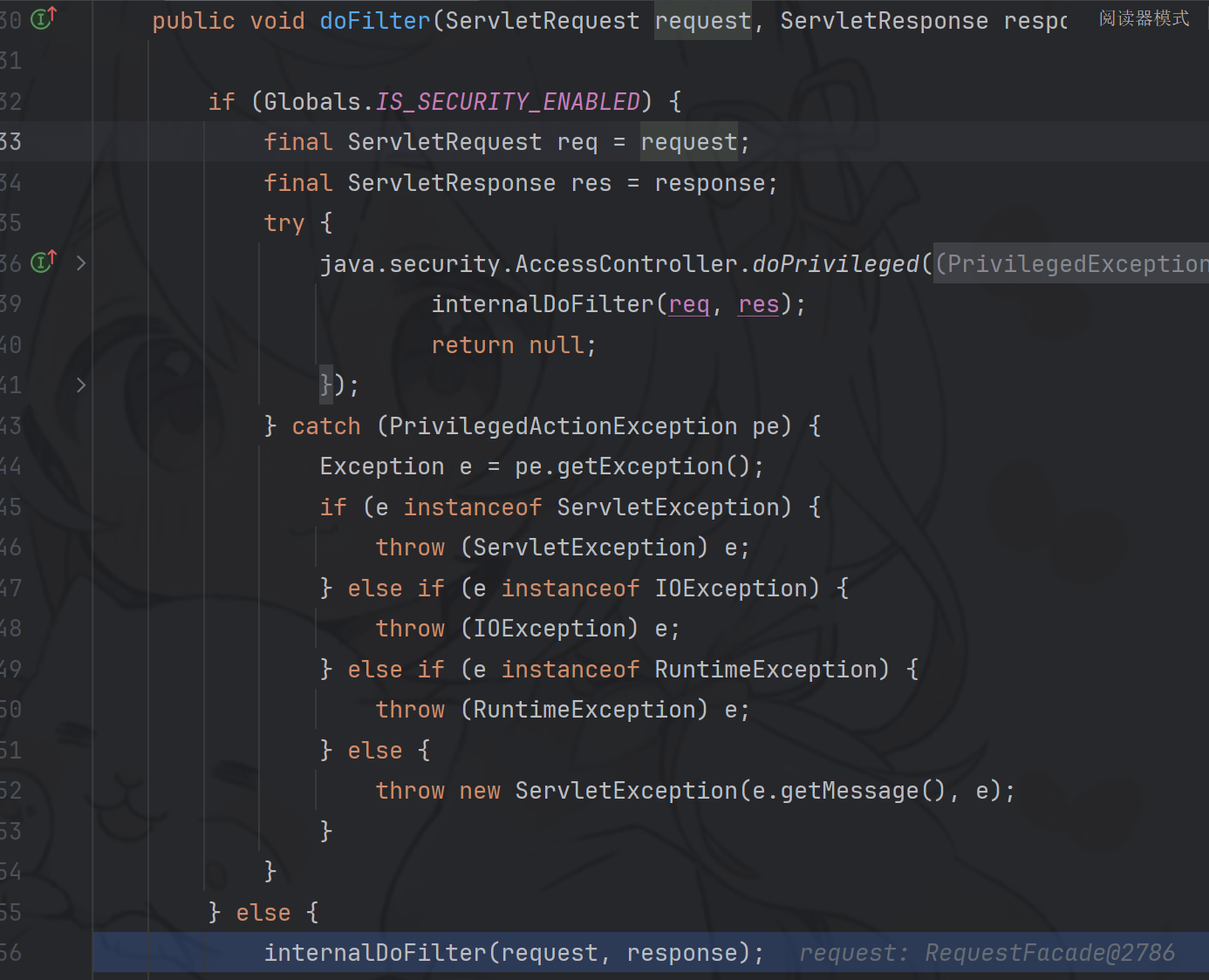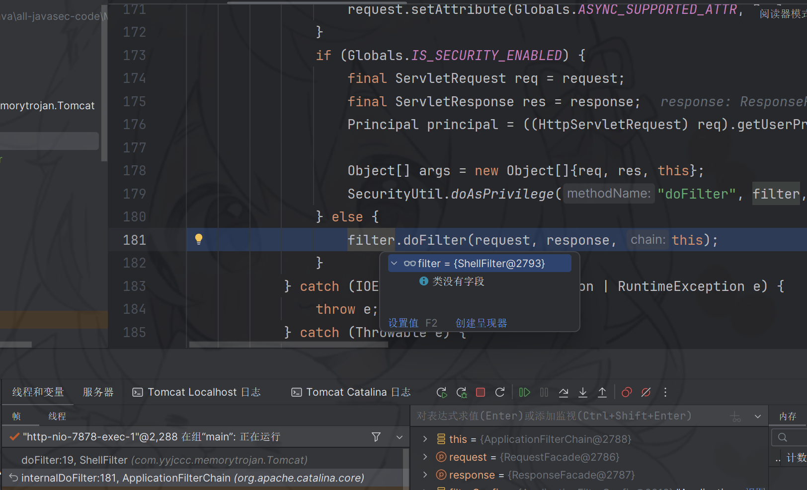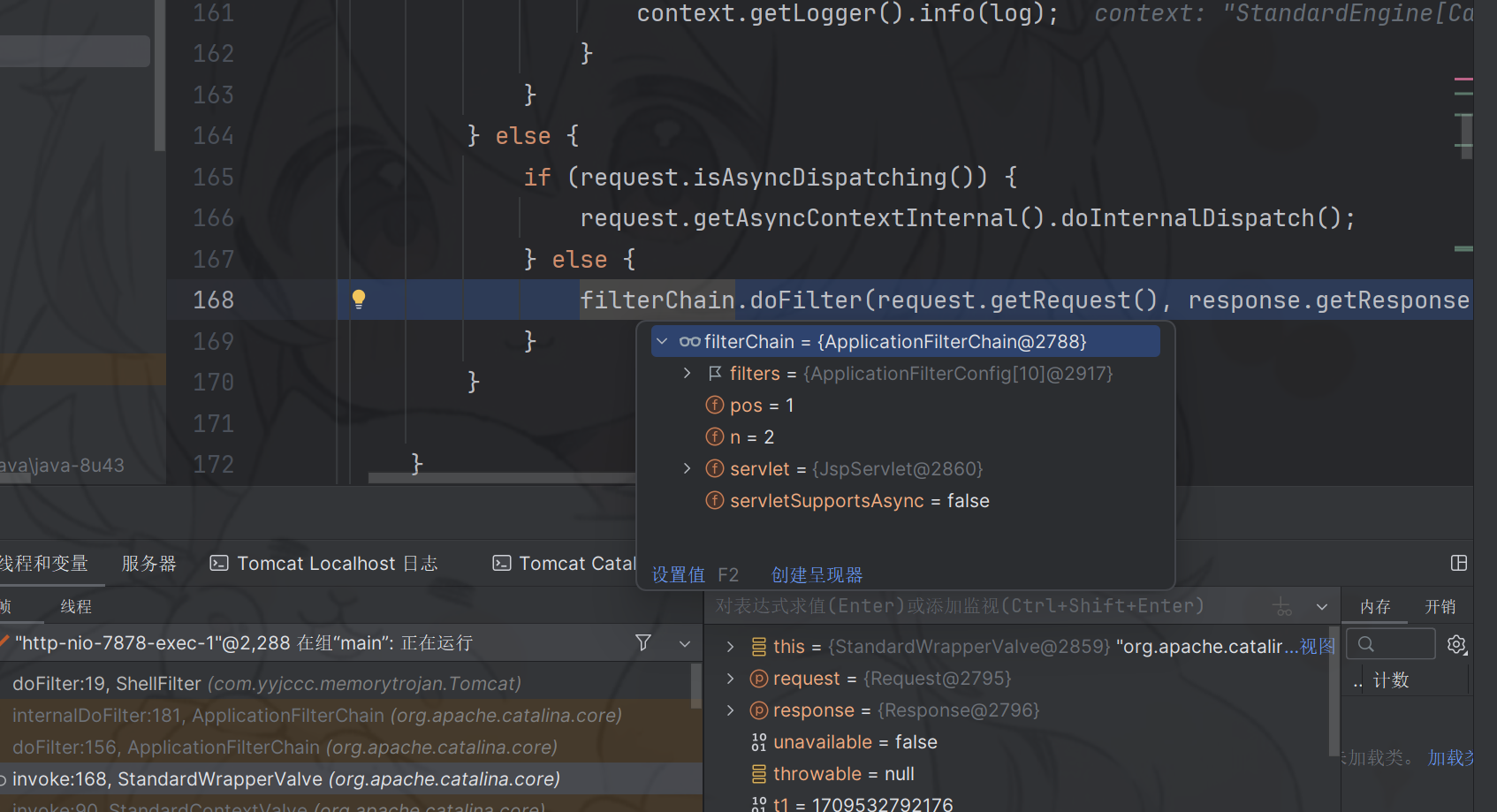进入上一层ApplicationFilterChain#internalDoFilter方法中