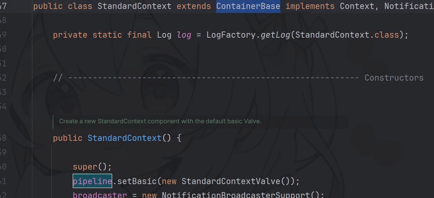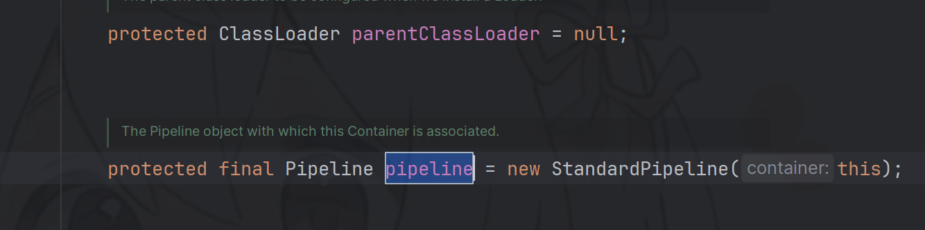 - 通过StandardContext对象获取StandardPipeline,即pipeline属性