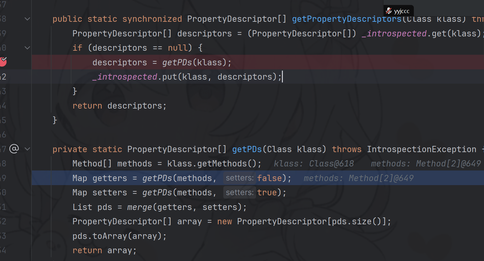 然后是进入getPDs方法,这里就会获取到getter和setter方法,再包装进入PropertyDescriptor就不细看了