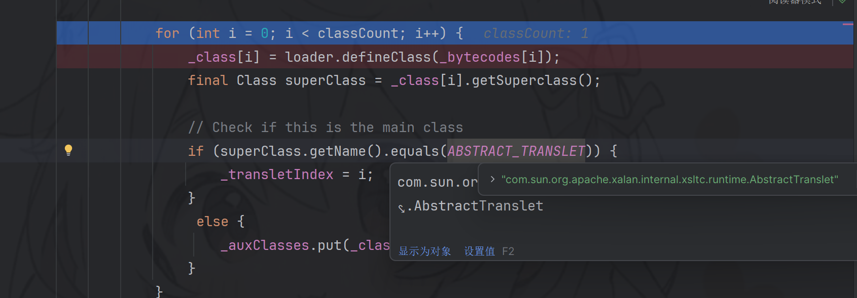 加载后会检查加载的类是否是继承于com.sun.org.apache.xalan.internal.xsltc.runtime.AbstractTranslet