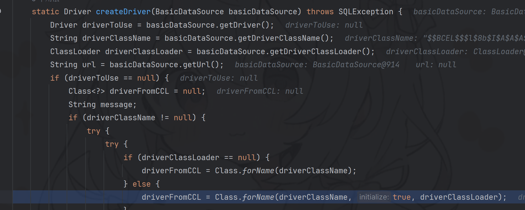 BasicDataSource#setDriverClassName() BasicDataSource#setDriverClassLoader()
