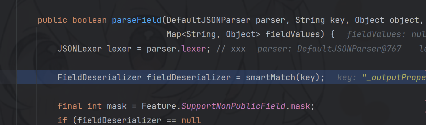 - parseField() 根据fieldType获取对应的fieldValueDeserilizer完成对属性值的反序列化 和 赋值操作