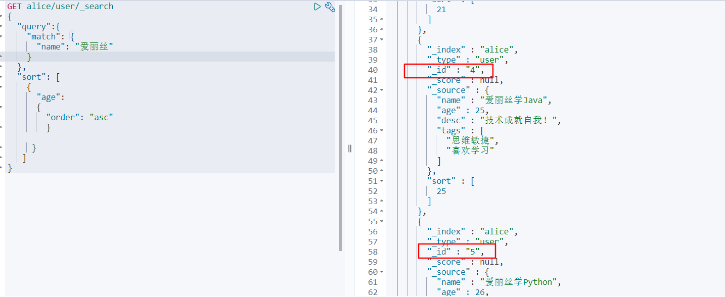 可以发现2条数据也都能查到,证明就算是term精确查询,也能够查询多个值。