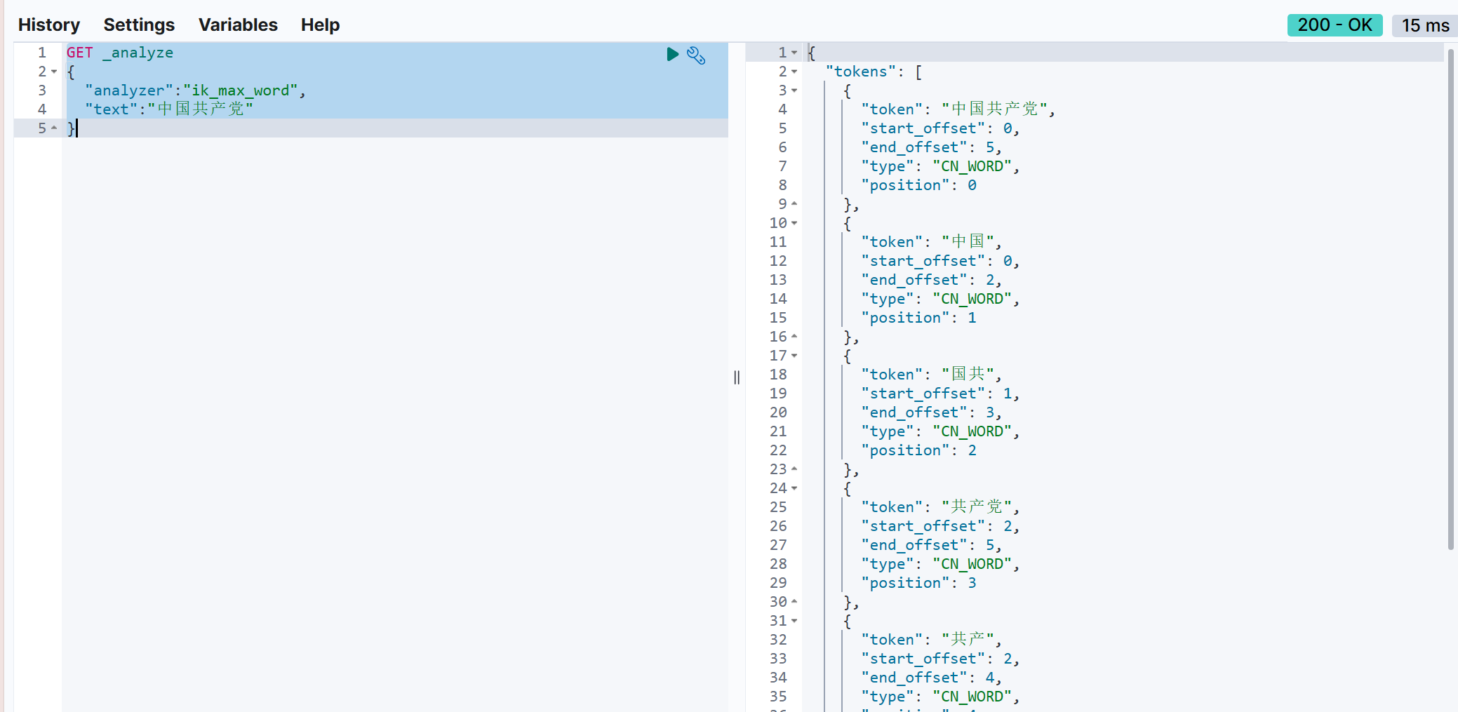 IK提供了两个分词算法:ik_smart 和 ik_max_word ,其中 ik_smart 为最少切分,ik_max_word 为 最细粒度划分