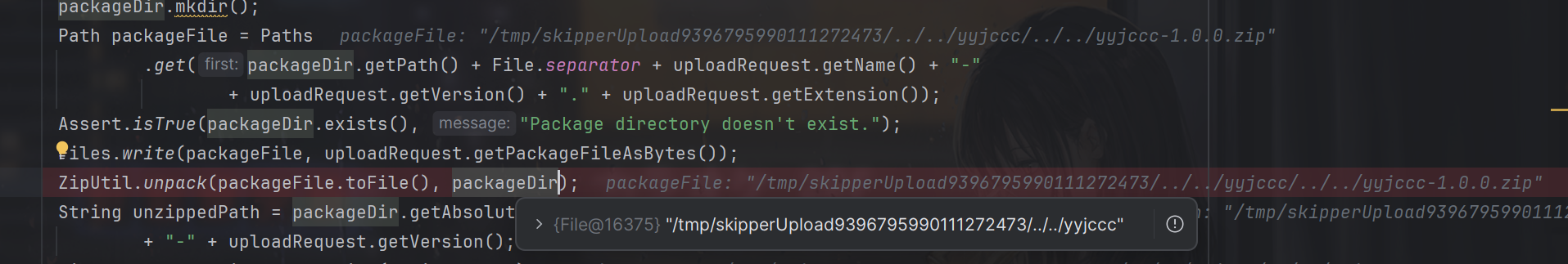 如:若packageDirPath 为 /tmp/upload/../../yyjccc